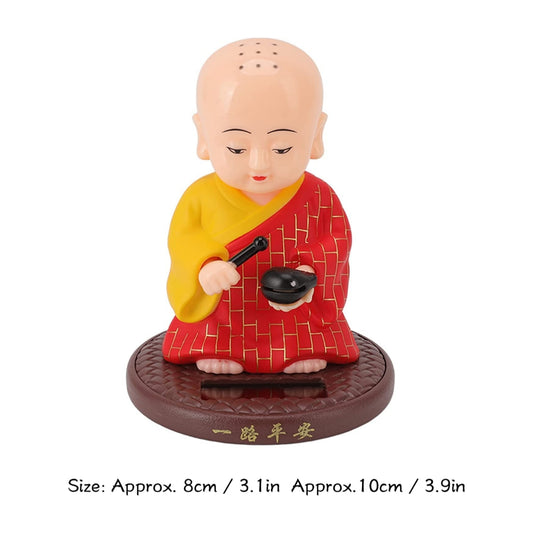 Little Monk Figurine, Solar Chinese Little Buddha Monk Statue, Bring Good Fortune Decoration Ornament, Funny Car Shaking Head Toy, Solar Power Nodding Head Dancing Toy