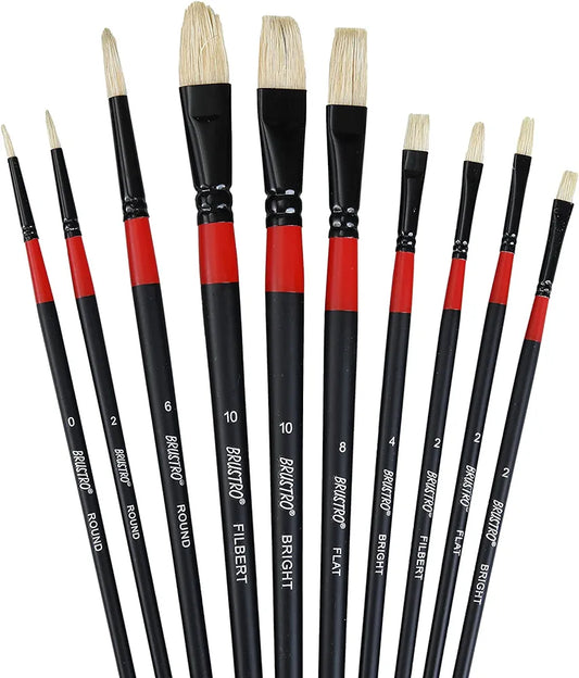 Brustro Artists ’ White Bristle Set of 10 Brushes for Oil and Acrylic.