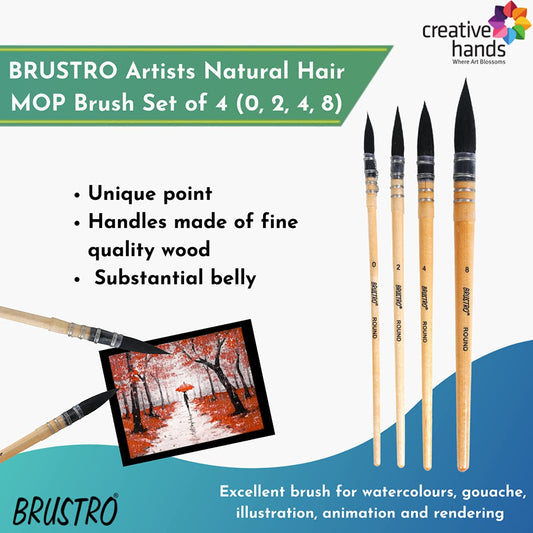 Brustro Artists Natural Hair MOP Brush Set of 4 (0, 2, 4, 8
