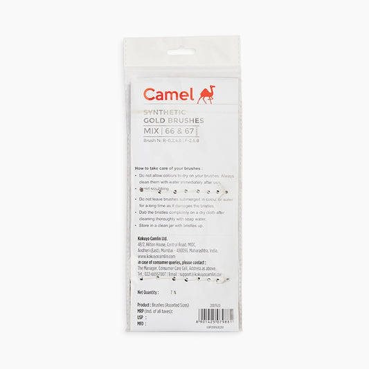 Camlin Camel Synthetic Gold Brushes Round - Series 66 & Flat - Series 67