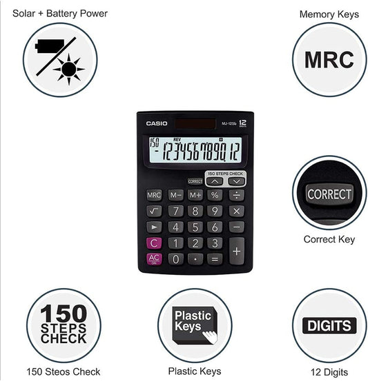 Casio MJ-120D 150 Steps Check and Correct Desktop Calculator with Tax Keys -Black