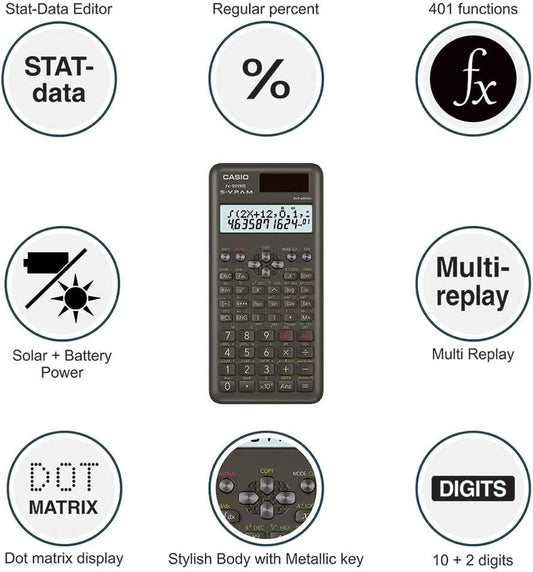 Casio FX-82ES Plus 2nd Edition - Non-Programmable Scientific Calculator, 252 Functions