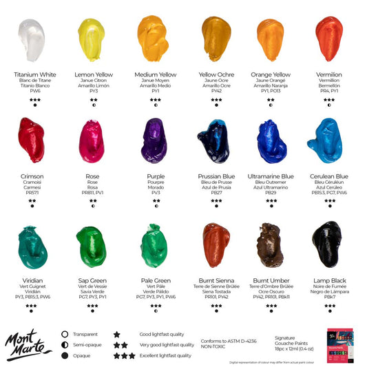 Mont Marte Gouache Paints Signature 18pc x 12ml (0.4 US fl.oz)
