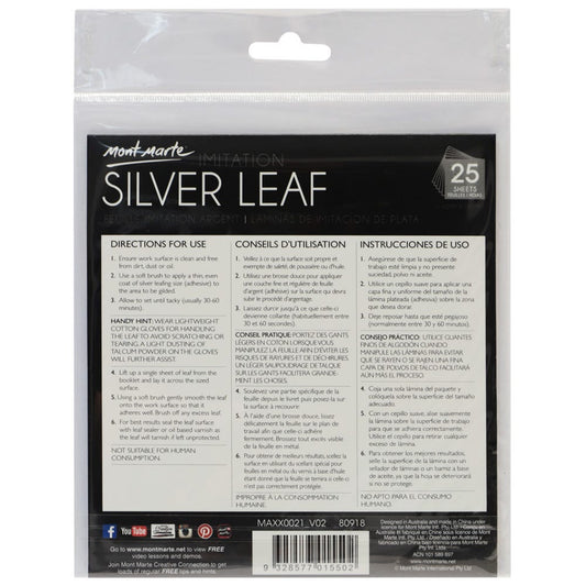 Mont Marte Imitation Silver Leaf Signature 14cm x 14cm (5.5in) 25 Sheets