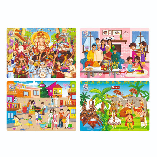 Ratna's 4 in 1 Indian Festivals Jigsaw Puzzle for Kids. 4 Jigsaw Puzzles with 35 Pieces Each (Ganesh CHATURTHI, RAKSHA BANDHAN, Holi & ONAM)