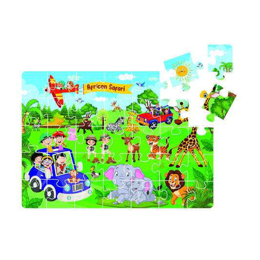 Ratna's 4 in 1 Safari World Jigsaw Puzzle for Kids. 4 Puzzles with 35 Pieces Each (African Safari, Polar Express, Mountain Safari & Desert Safari)