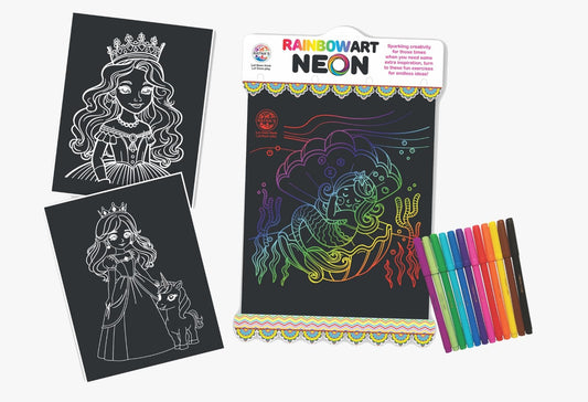 Ratna's RainbowArt Neon Colors Creative Coloring Kit with 20 Sheets and 12 Sketch Pens, 35x27.5cm Sheets - Creative Coloring Fun for All Ages