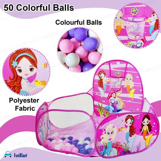 Large Size Ball Pool for Kids, Foldable Square Zoo Ball Pool Play Tent Kids, Playground Tent House with 50 Balls – Ball Pool Game for 2-5 Years Old Kids, Boys, Girls (Mermaid)