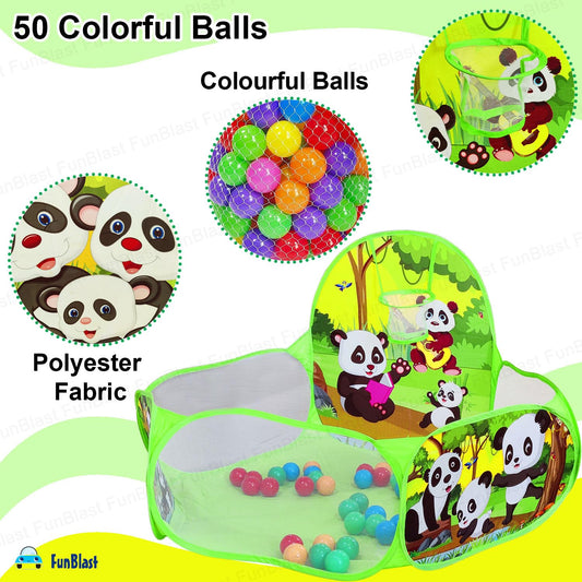 Large Size Ball Pool for Kids, Foldable Square Zoo Ball Pool Play Tent Kids Playground Tent House with 50 Balls – Ball Pool Game for 2-5 Years Old Kids, Boys, Girls (Panda Ball Pool)