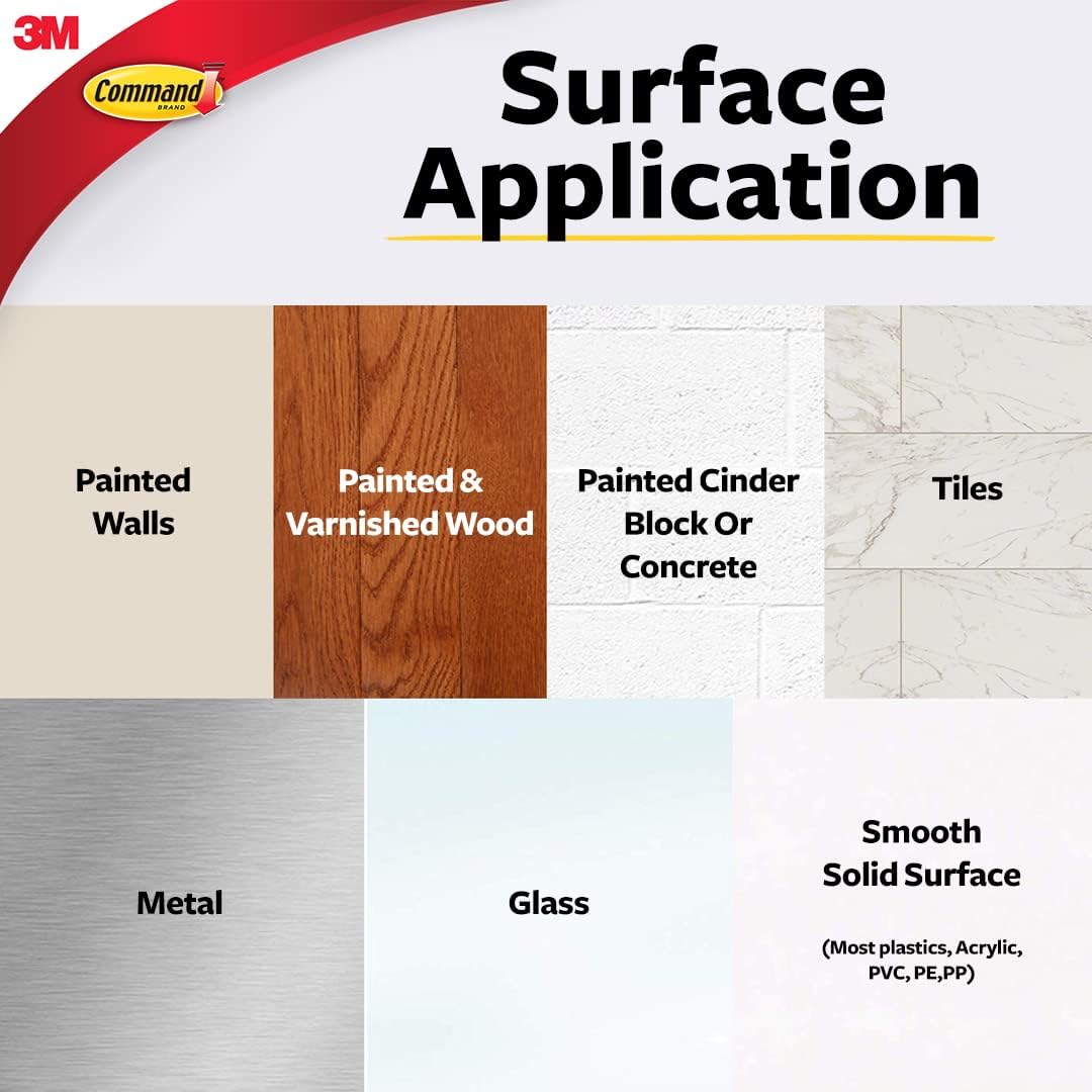 Separate backing strip adheres firmly to flat surfaces, yet removes cleanly