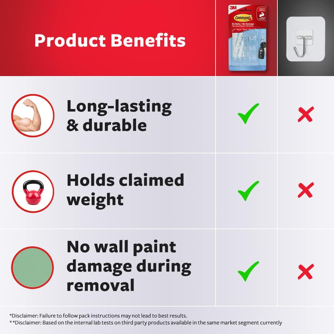 3M Command Plastic Clear Mini Wall Hooks, Up To 225Gms, Holds Strongly, Adhesive Hooks For Wall, Reusable, Multi-Surface Damage Free Hooks For Hanging Transparent, 6Hooks, 8 Strips