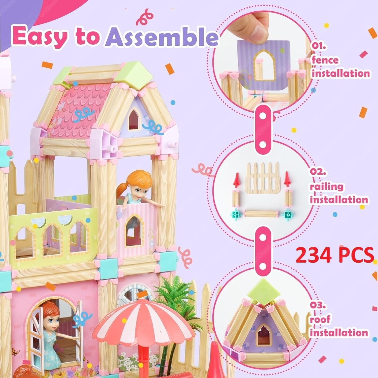 Dream House Playset for Girls, DIY Pretend Doll Mansion with Accessories - 234 Pcs Dream House Building Blocks Kit, Dream Castle for 3+ Year Old Girls, Kids, Childrens (Multicolor)
