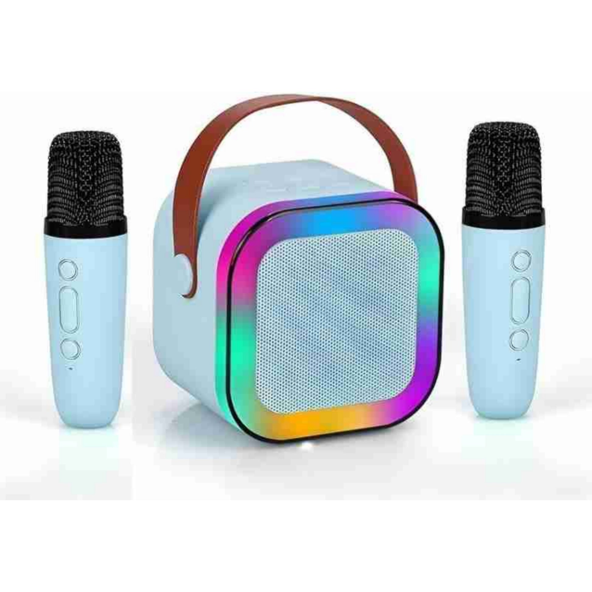 K12 Wireless Karaoke Dual mic with Speaker Bluetooth: Bluetooth-Enabled Wireless Karaoke Mic Speaker with Multiple Compatibility Modes, RGB Lighting, and Party POP Bluetooth Blue