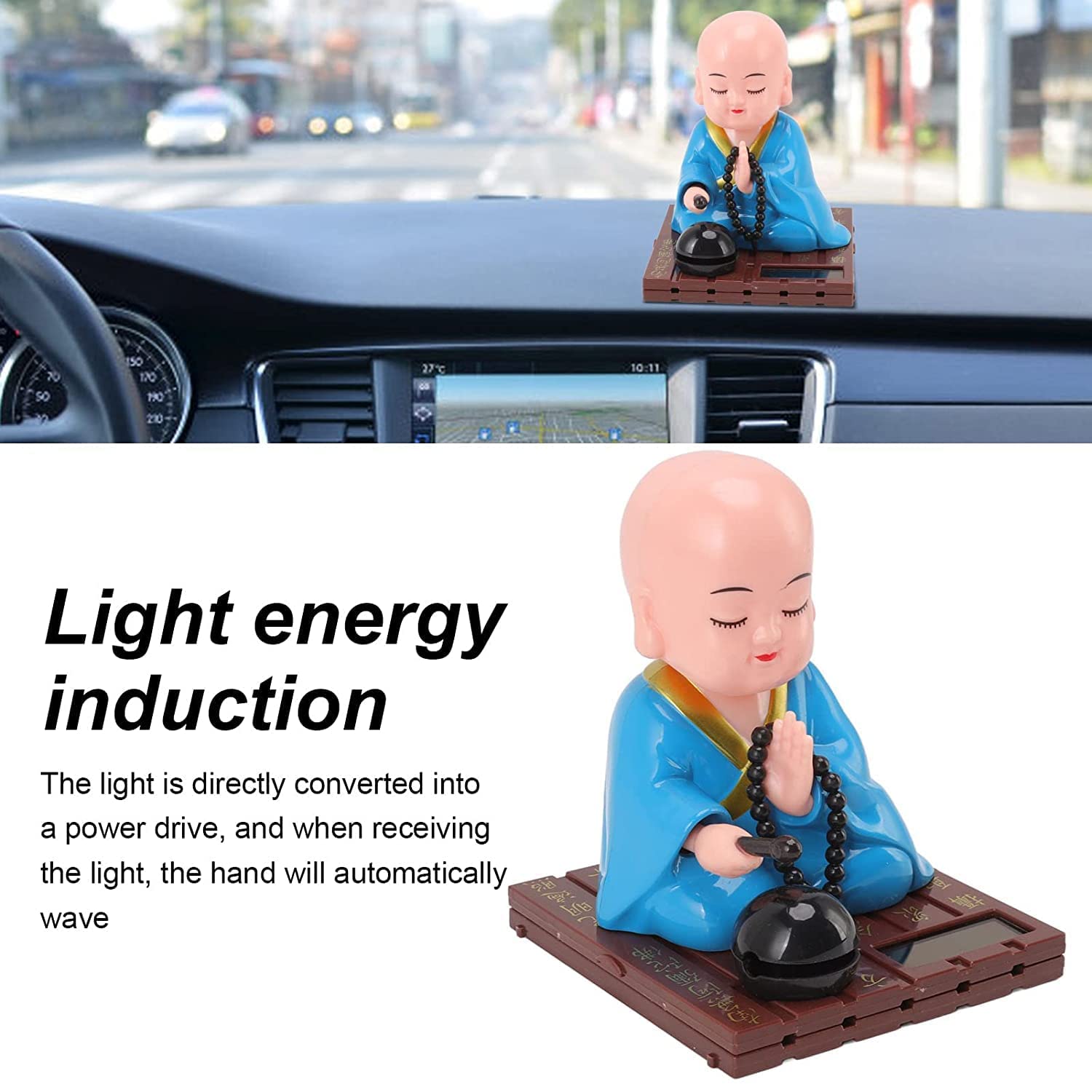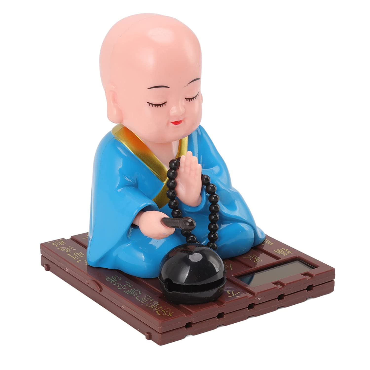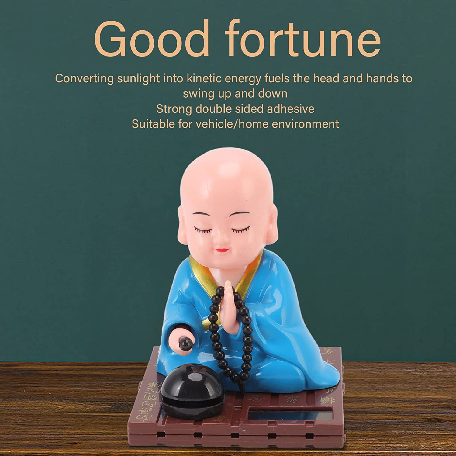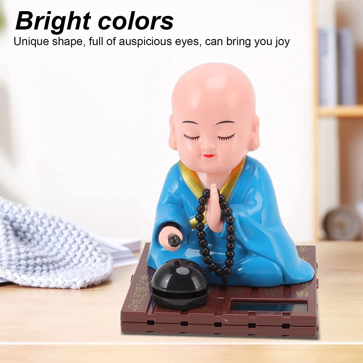 Little Monk Figurine, Solar Chinese Little Buddha Monk Statue, Bring Good Fortune Decoration Ornament, Funny Car Shaking Head Toy, Solar Power Nodding Head Dancing Toy