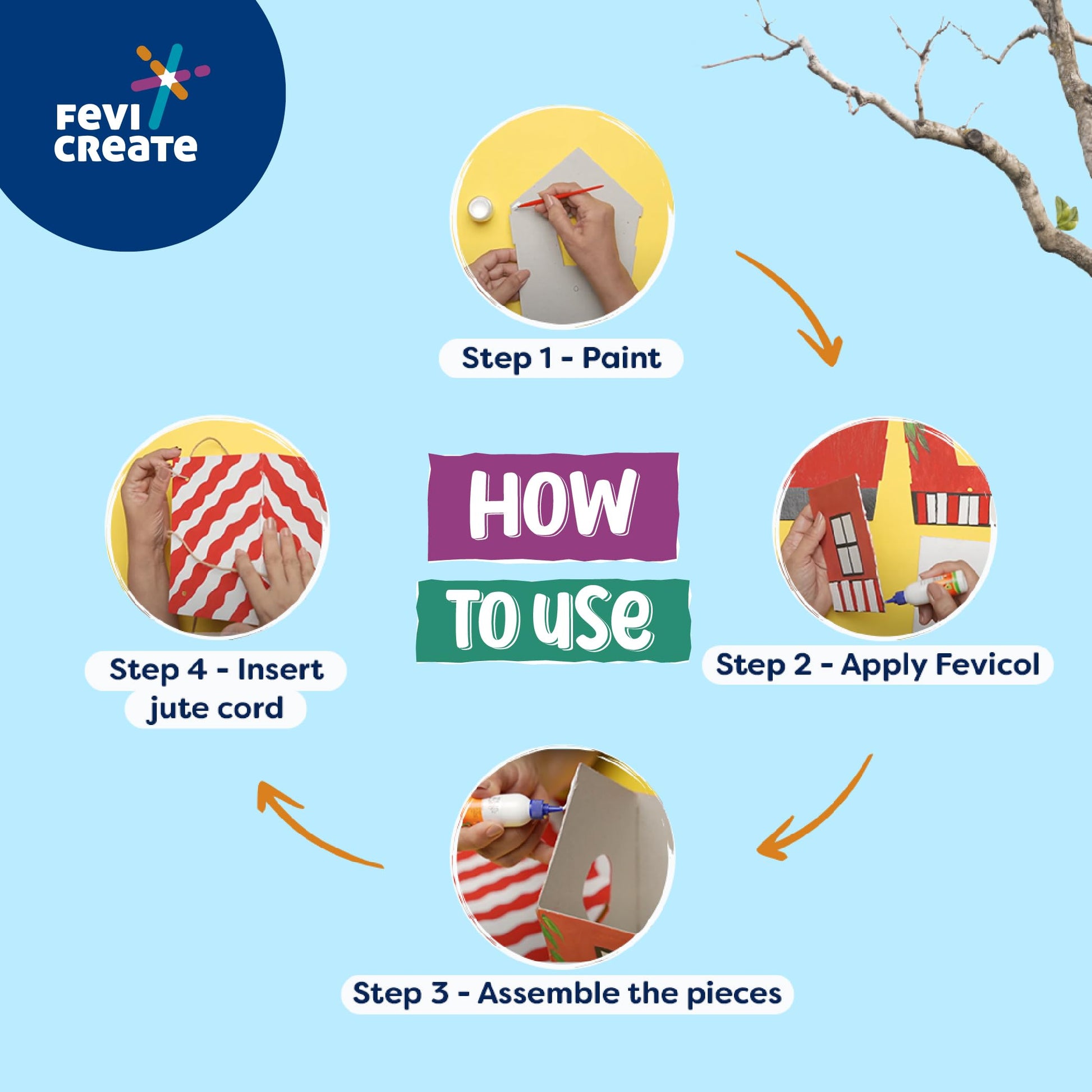 Pidilite Fevicreate Make Your Own Birdhouse art and craft kit learn birdlife in a fun way All art materials provided white acrylic colour and instruction manual Fevicol Craft bird homes Birthday gift for girls and boys 7+ years