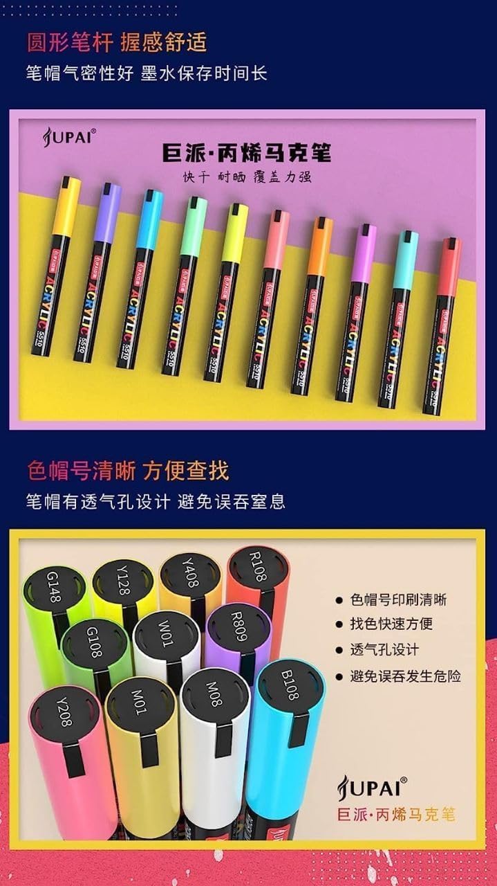 [SAFE& NON-TOXIC]-Acrylic paint pens use WATER-BASED environmentally friendly pigment inks, NON-TOXIC and ODORLESS, SUM-PROOF, water-proof, quick-drying, NO LEAKAGE, strong covering power, Adults and children can use it with confidence.
