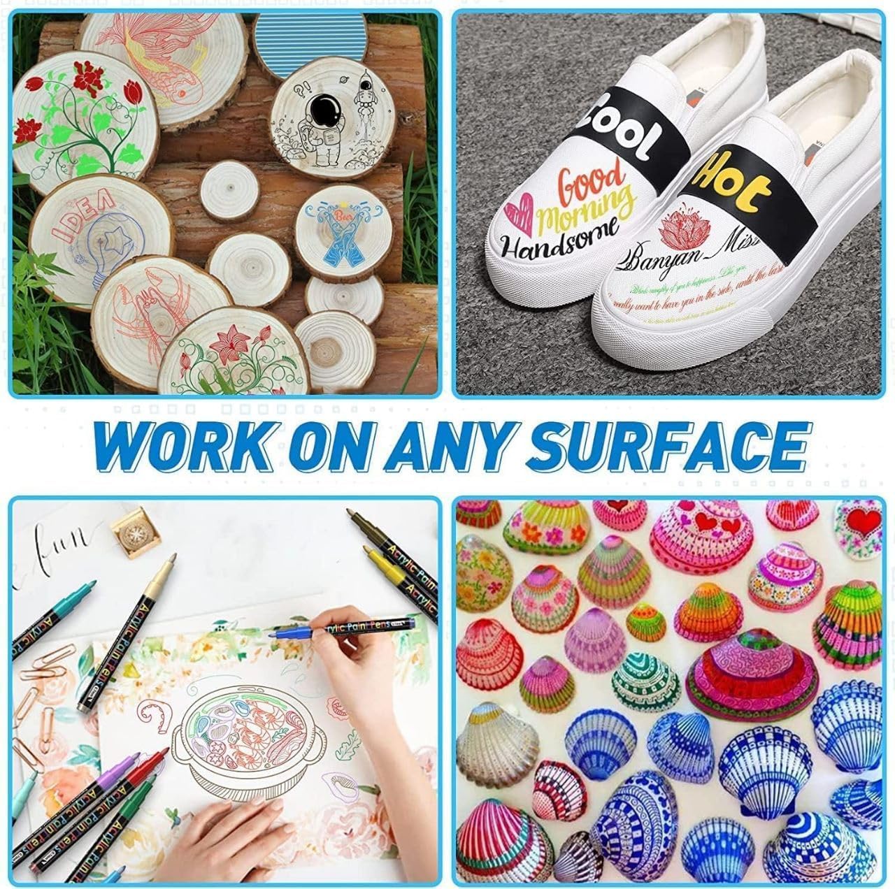 【WORKS ON ALMOST ALL SURFACES】Acrylic paint pens have a strong coverage and can use on almost all surfaces, such as rock, wood, paper, metal, glass, ceramic, plastic, and even tire, suitable for making labels, decorating wedding blackboards, painting on stained glass and making rock art projects.