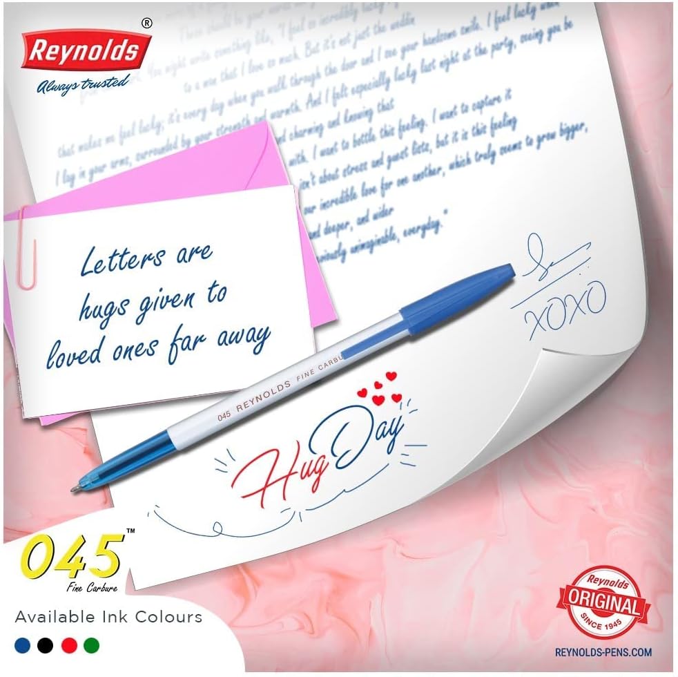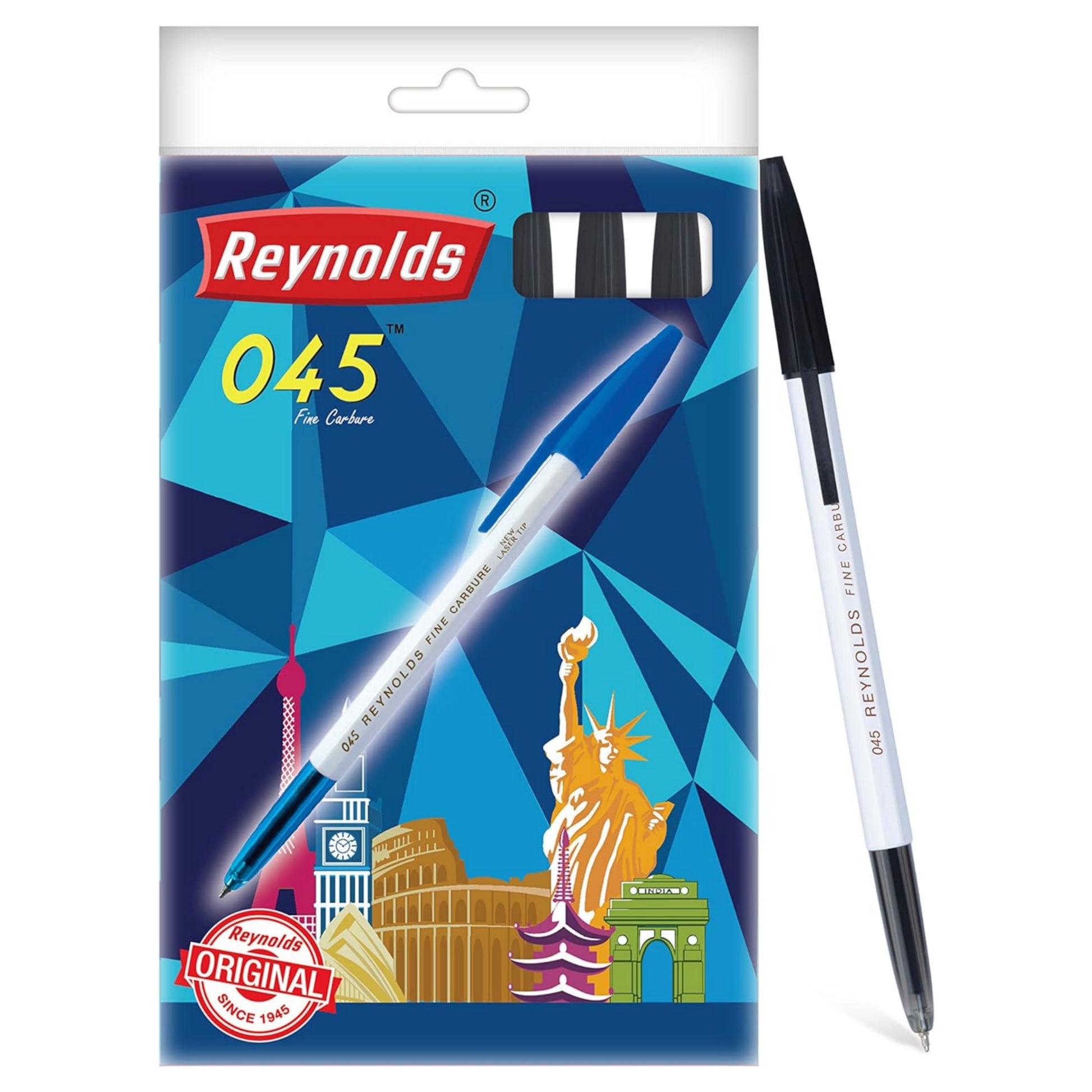 Reynolds 045 - Black (PACK OF 10) | Ball Point Pen Set With Comfortable Grip | Pens For Writing | School and Office Stationery | Pens For Students | 0.7 mm Tip Size